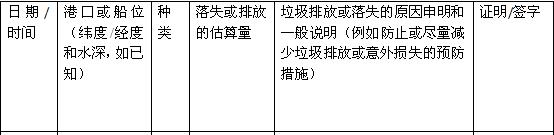 (二)船舶垃圾的排放、焚燒和意外落失應(yīng)按照修正案第10條進(jìn)行記錄。