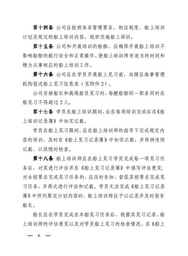 中華人民共和國(guó)海事局關(guān)于印發(fā)《中華人民共和國(guó)海船船員船上培訓(xùn)管理辦法》的通知